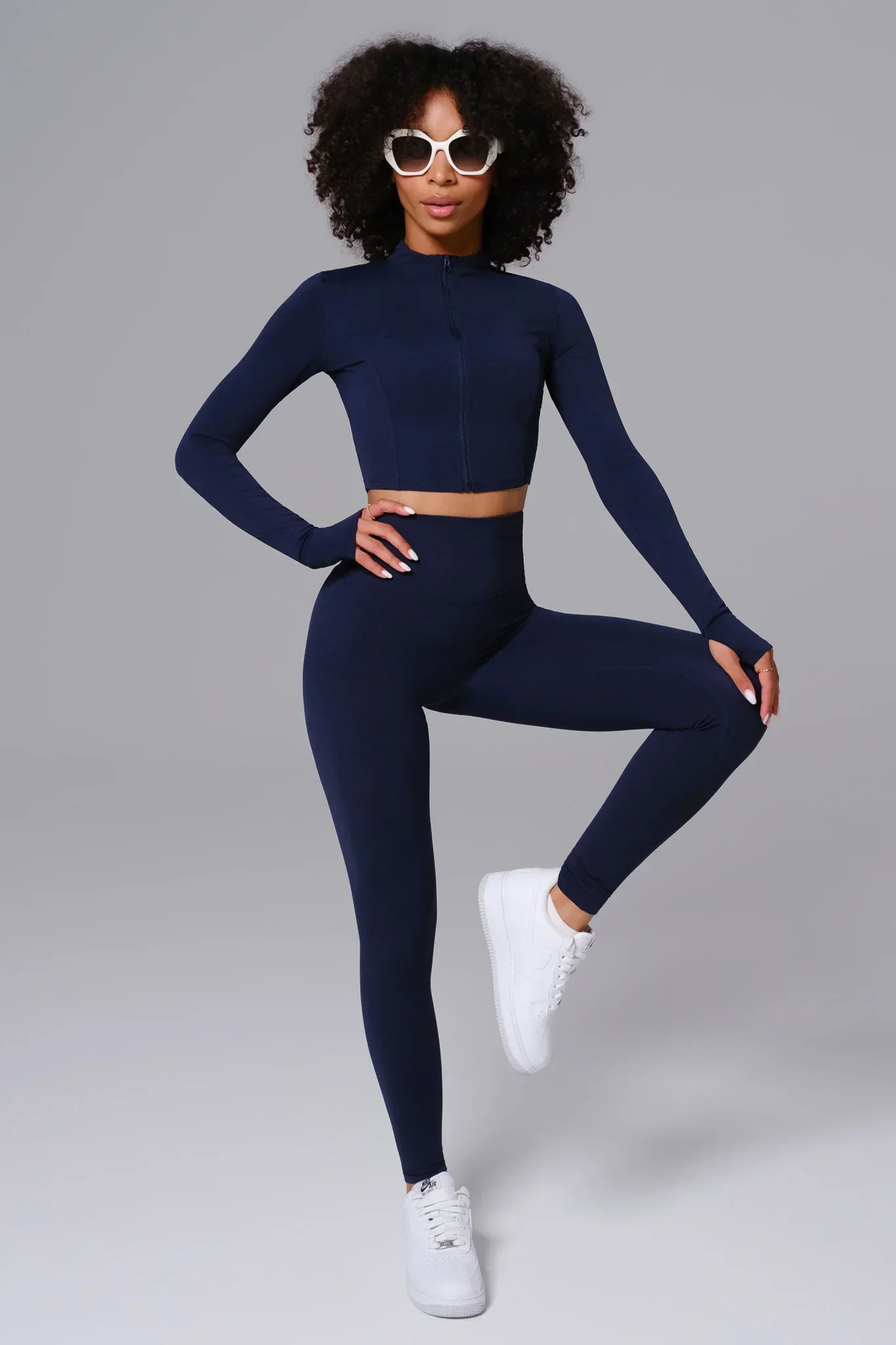 A cropped zip-up jacket designed for layering. Made with smooth, stretchy fabric for a second-skin fit, complete with long sleeves and thumbholes for added comfort. Perfect for warming up, cooling down, or everyday wear.